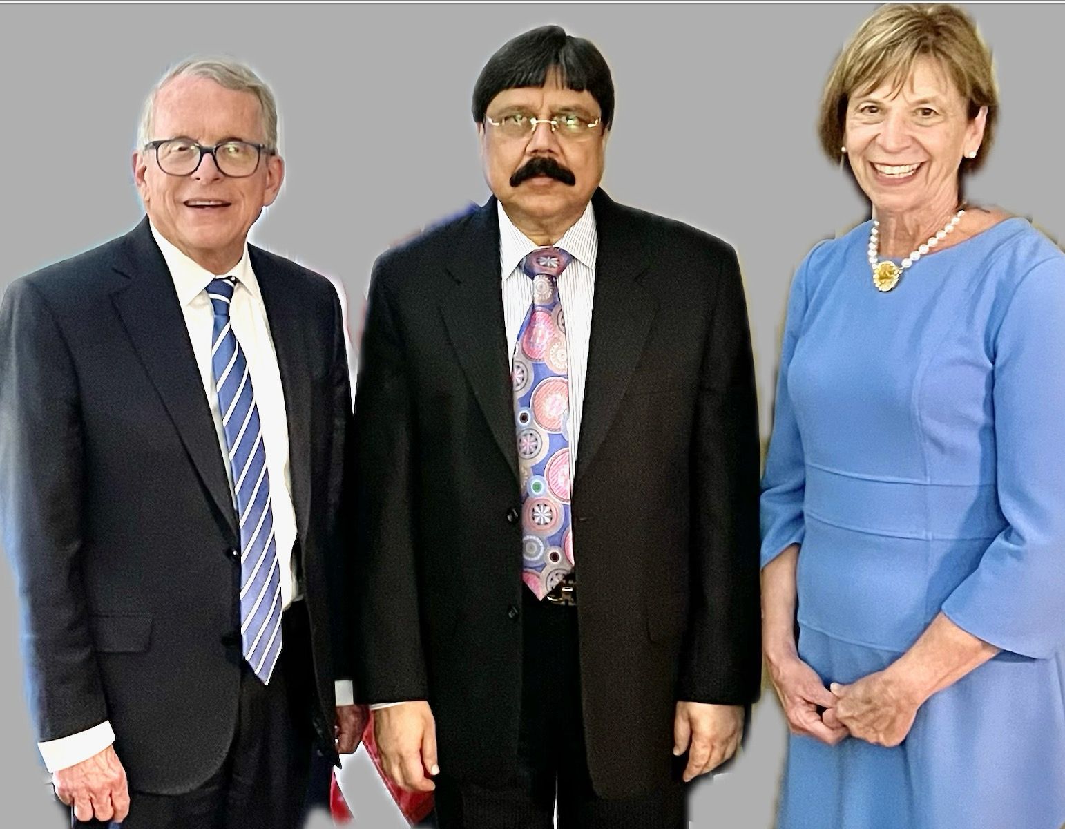 Dr. Gholam Mujtaba is seen with Ohio Governor Mike DeWine and First Lady Fran DeWine.